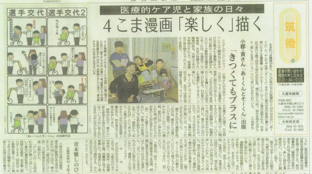 小郡市内に住んでいる、障害児あーくんと、その家族の日常を描いた4コマ漫画。